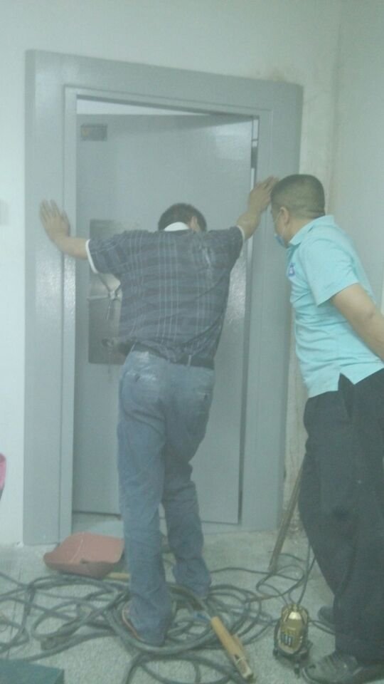 沙头角金万家珠宝内右开金库门安装中