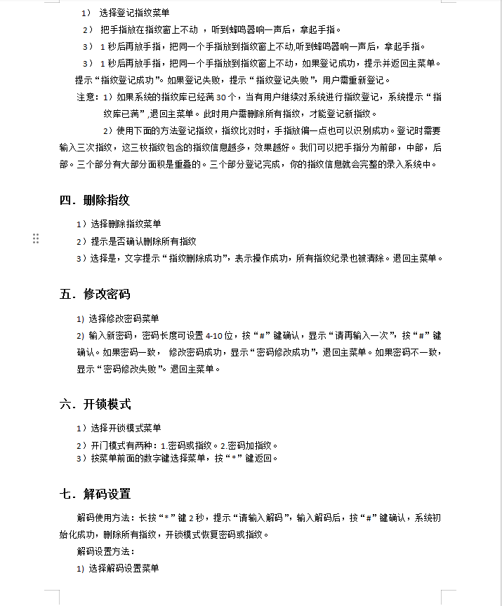 首页 >> 技术支持 >> S002指纹金刚锁(带管理码)说明书_